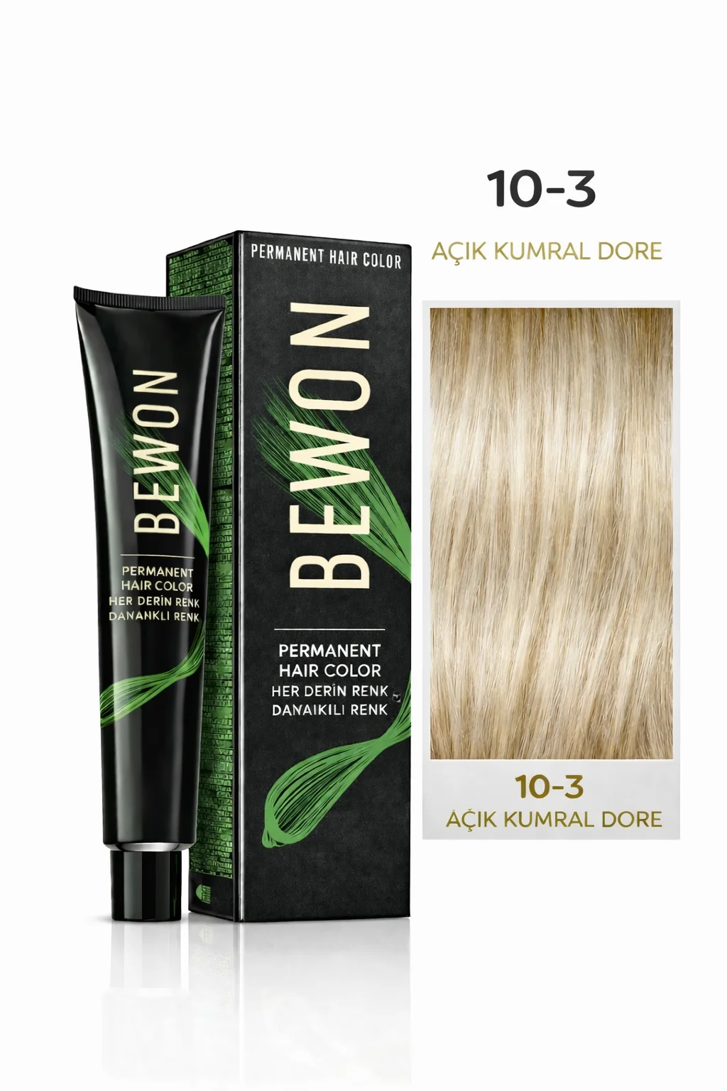 BEWON Saç Boyası, 100 ml'lik şık ambalajında, saçınıza ihtiyacınız olan ışıltı ve canlılığı kazandırmak için özel olarak formüle edilmiştir. 10-3 Açık Sarı Dore tonu, sarının sıcak ve altın renginin birleşimiyle müşterilerine doğal bir görünüm sunar. Bu özel ton, açık sarı rengi sevenler ve cilt tonuyla uyumlu bir seçenek arayanlar için idealdir.