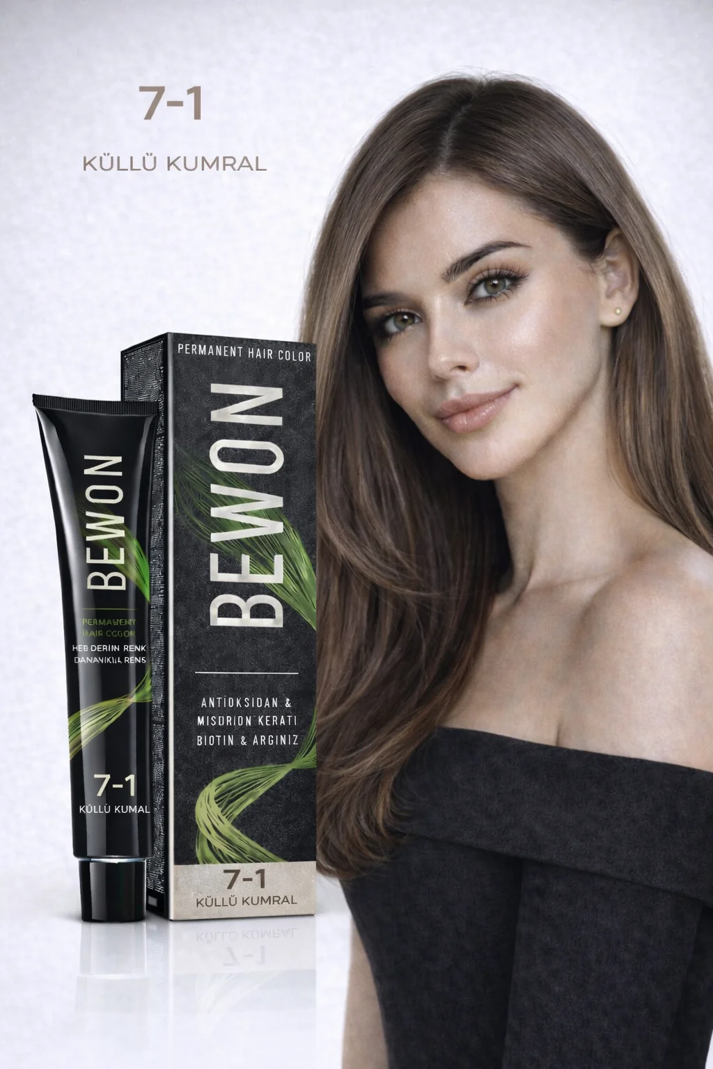 Ürün Tanımı: BEWON Saç Boyası, 100 ml’lik pratik ambalajıyla, sizlere etkileyici ve kalıcı bir renk deneyimi sunmak için tasarlanmıştır. 7-1 Kumral Küllü tonuyla, saçınıza doğal bir derinlik katarken, aynı zamanda modern ve şık bir görünüm elde etmenizi sağlar.