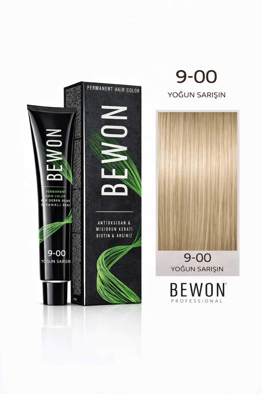 BEWON Saç Boyası 100 ML - 9-00 Yoğun Sarışın, hem doğal hem de ışıl ışıltı bir görünüm elde etmek isteyenlerin tercihi. Parlak, sağlıklı ve hedeflediğiniz sarışın tonda bir saç rengi için BEWON'u deneyin; değişiminizin tadını çıkarın!