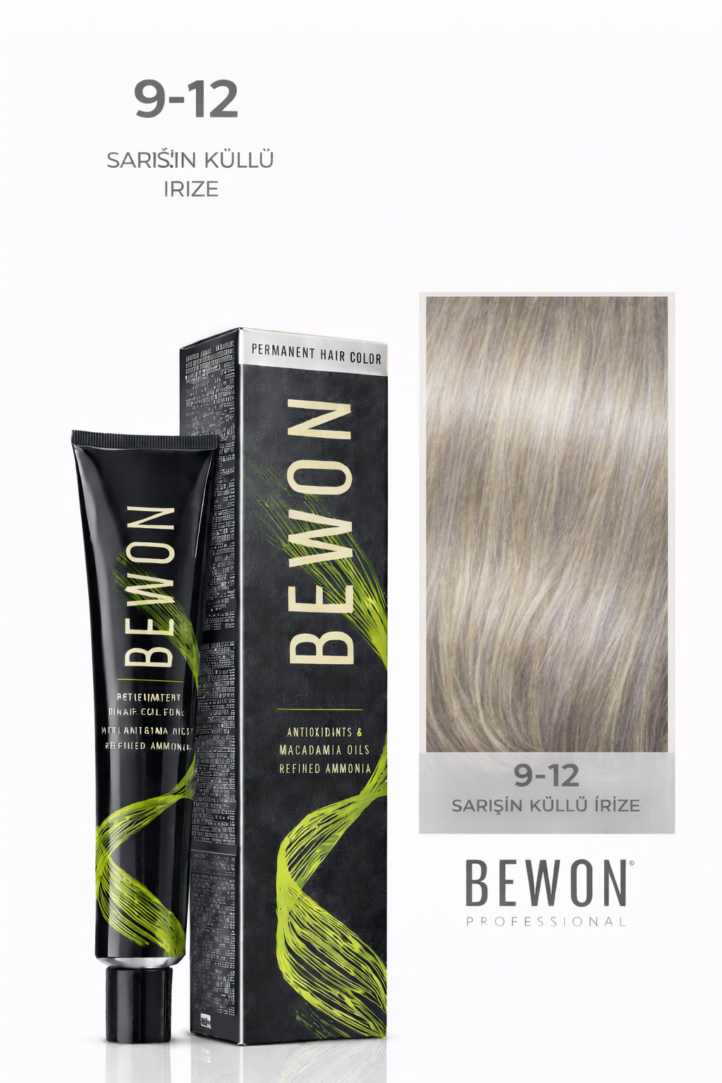 Ürün Tanımı: BEWON Saç Boyası, 9-12 numara ile tanımlanan SARIŞIN KÜLLÜ İRİZE tonunda, saçlarınızı etkileyici bir şekilde renklendirmek için özel olarak formüle edilmiştir. Bu ürün, kalıcı ve eşit bir renk sağlarken, saçların doğal ışıltısını korumasına yardımcı olur. 100 ml’lik pratik ambalajıyla evde kullanılmak üzere idealdir.