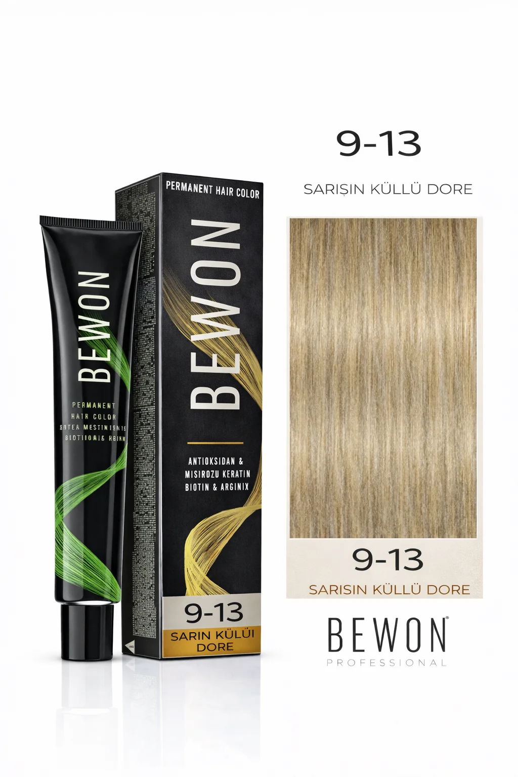 BEWON Saç Boyası, saçlarınıza göz alıcı bir ışıltı katmak ve uzun süre kalıcı bir renk elde etmek için özel olarak formüle edilmiştir. 100 ml'lik pratik boyası, salon kalitesinde sonuçlar almanızı sağlar. 9-13 numarasıyla tanınan Sarışın Küllü Dore rengi, soğuk ve sıcak tonların eşsiz birleşimi ile saçlarınıza doğal bir derinlik ve boyut kazandırır.