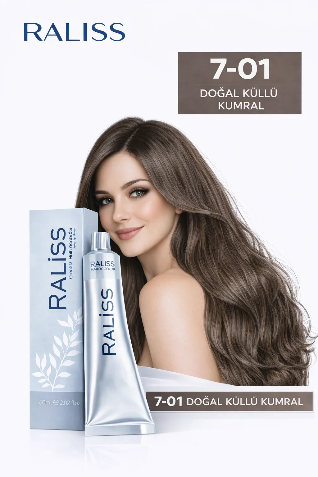 RALİSS SAÇ BOYASI 7-01 Doğal Küllü Kumral ile doğal, şık ve sağlıklı görünüm elde etmek artık çok kolay! Evde profesyonel kalitede saç rengi için RALİSS’i tercih edin ve özgüveninizi artıracak etkileyici değişimi yaşayın!
