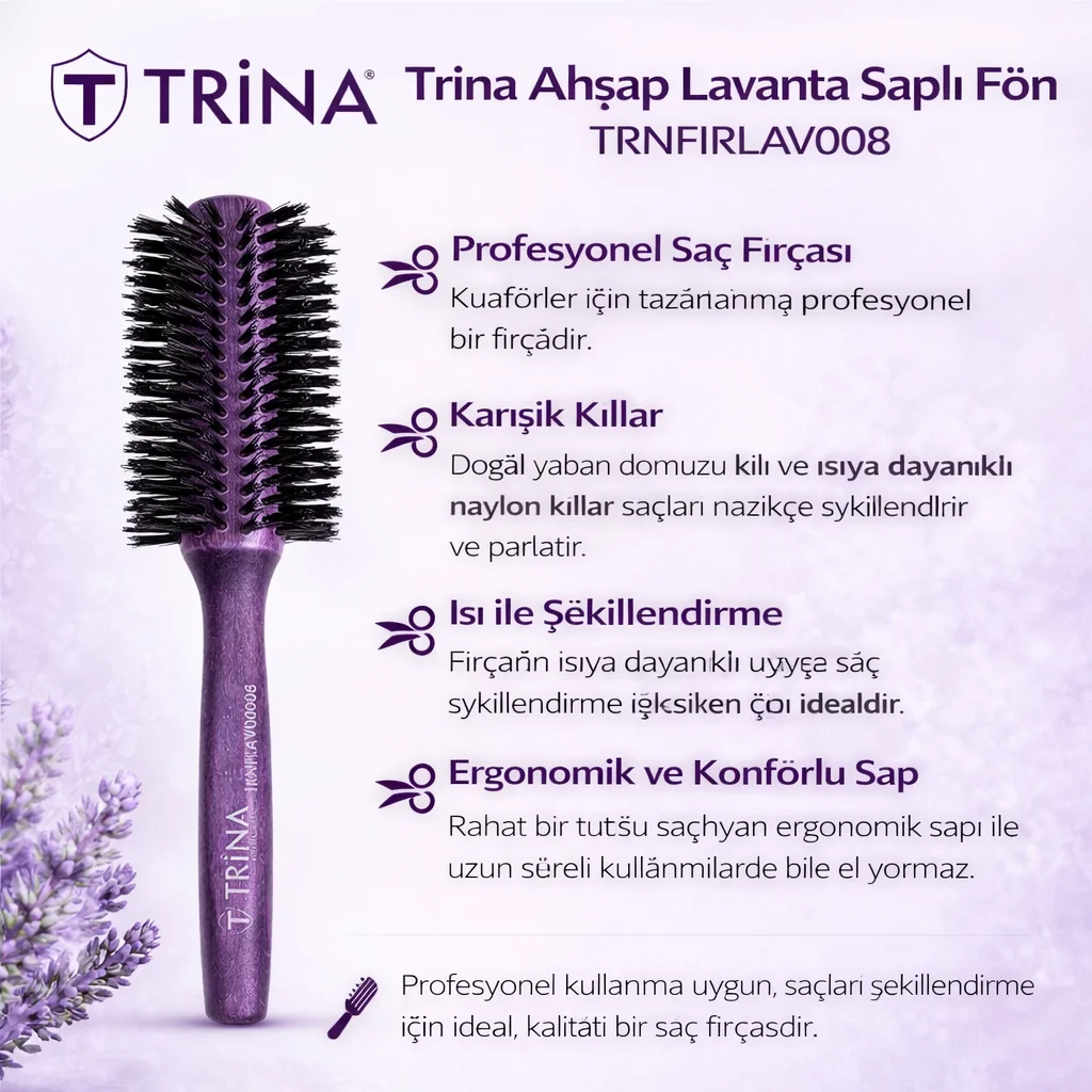 TRİNA LAVANTA SERİSİ AHŞAP SAPLI FÖN FIRÇASI (TRNFIRLAV008)