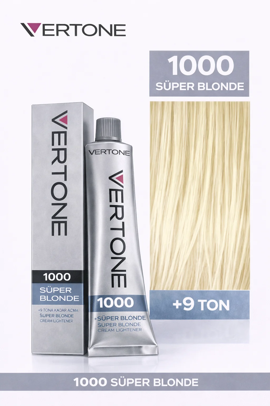 Yüksek kalitede, gelişmiş formülasyona sahip olan VERTONE; kullanıcıların hem renk hem de bakım ihtiyacını karşılar. Boya sonrası kalıcı ve canlı bir renk isteyenler için mükemmel bir tercihtir. Göz alıcı, parlak ve doğal bir sarı tonu arayışında olanlar için 1000 Süper Blonde, ideal bir seçenektir.
